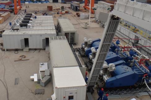 DC:絞車采用三軸鏈條驅(qū)動(dòng),用氣胎離合器換擋,四正一倒,操作便捷,配液壓盤剎和渦流剎車。通過45KW小電機(jī)實(shí)現(xiàn)自動(dòng)送鉆,控制精度高,減小司鉆工作強(qiáng)度,提高工作效率,提高井眼質(zhì)量。轉(zhuǎn)盤用1臺(tái)直流電機(jī)通過2檔齒輪箱驅(qū)動(dòng)轉(zhuǎn)盤。電傳動(dòng)系統(tǒng)數(shù)字總線控制,抗干擾能力強(qiáng),自動(dòng)故障檢測(cè)。