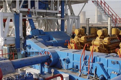 ◆ 機(jī)械鉆機(jī)是柴油機(jī)驅(qū)動(dòng)用鏈條箱并車后驅(qū)動(dòng)絞車和泥漿泵,通過爬臺(tái)萬向軸驅(qū)動(dòng)轉(zhuǎn)盤鏈條箱帶動(dòng)轉(zhuǎn)盤。